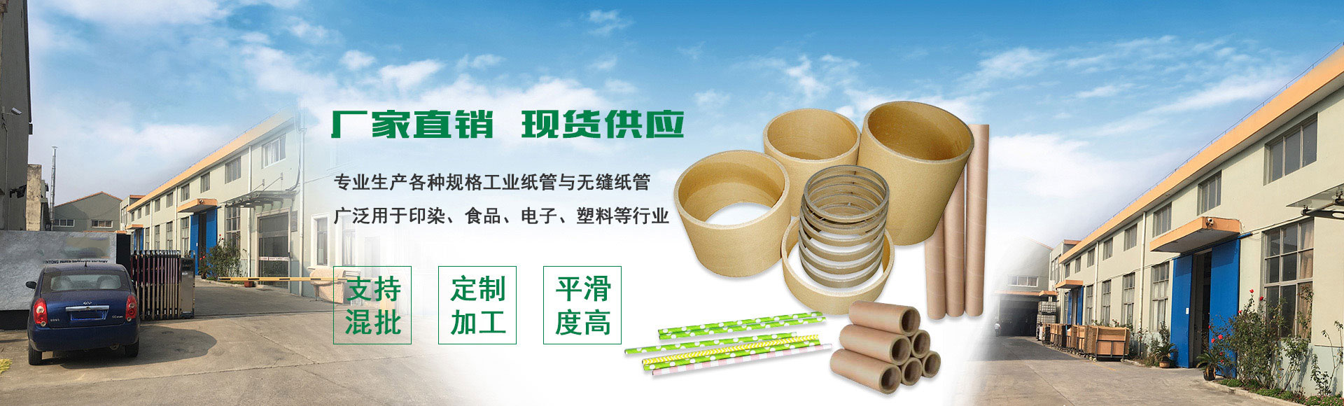 • 某某制品厂位于新区,一家专业生产各种规格工业纸管、无缝纸管、电池纸套、纸吸管的纸管厂家